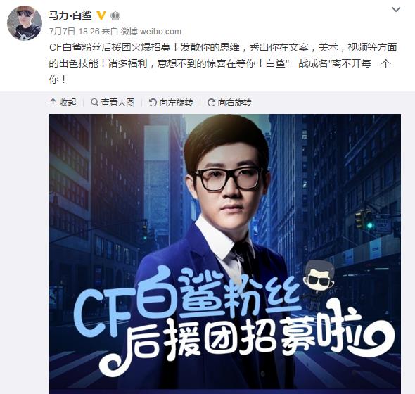 近日,《穿越火线》前职业选手、电竞俱乐部老板、CFPL官方解说、龙珠直播一哥……这个拥有多重身份的电竞明星“白鲨”在微博宣布成立后援团,向广大白鲨军和热爱CF的玩家传达了自己的后援团正在筹备的消息,加入团队可以赚取诸多福利,更有机会同白鲨零距离接触。