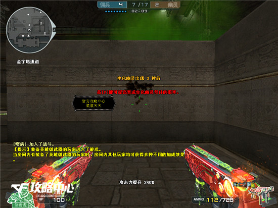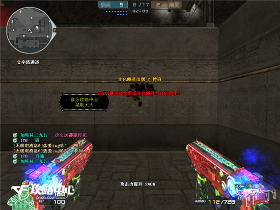 提示:生化模式中只能使用双手冲锋枪。提升了移动速度和性能,点击鼠标右键时还可以打开枪托,替换成射速更快的双手冲锋枪。