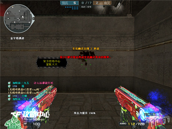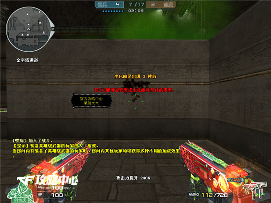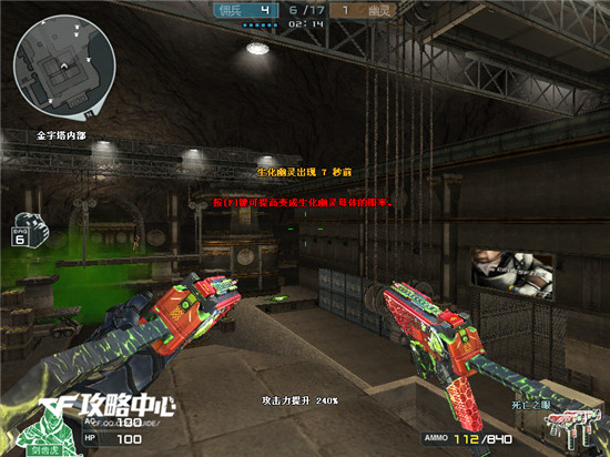 提示:生化模式中只能使用双手冲锋枪。提升了移动速度和性能,点击鼠标右键时还可以打开枪托,替换成射速更快的双手冲锋枪。