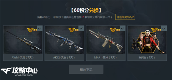 最后则是一份丰厚的英雄级武器大礼包,但所花费的积分则是高达60。我们可从AWM-天龙、AK12-天启、M4A1-死神和审判者中进行四选二。在这里需要说明的是,M4A1-死神虽然颇受争议,但它在生化模式中的表现却是没有几把步枪可以超越的。AK12-天启作为第一把非主流英雄级武器,希望大家不要总是把焦点集中在其首发概率失准的不足之处上,而是应多向它的优点看齐。