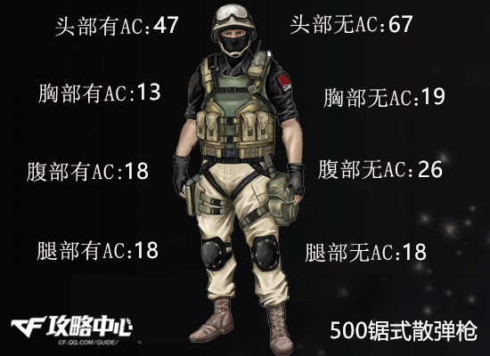 从武器威力中可以看出,500锯式散弹枪的威力还是值得肯定的。虽然其每颗弹丸的伤害量并不算高,但要是乘以八来算的话就极为恐怖了。在0距离的情况下,对于敌人头部的伤害可高达300-500HP,对于其它部位也都是一击必死。这种伤害虽然在普通模式里并不是太明显,但要到生化中就可发挥到极致。但遗憾的是,一旦与敌人的距离拉远,其威力就会大大削减,这也是不受大家欢迎的主要原因之一。