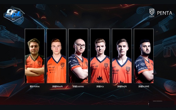 Penta是欧洲FPS传统豪强战队,在2014年上半期大部分的GO4CUP季度赛中,他们几乎包揽了所有冠军,要知道,那个时候,他们才刚刚成立。因此他们获得了非常高的人气和支持率,并且有着“欧服亚洲队”的别称。在随后的CFS2014世界总决赛,Penta再次展现了强大的实力,若不是遇到了来自中国的护国神狙田丰带领的EP,相信他们绝对不会只是第四名!但他们还是证明了自己,在CFGI2016世界总决赛中取得了第三名的好成绩。新人MooN在CFGI 2016加入了战队,成为Penta的新晋狙击手。他拥有着极高的游戏天赋,往往能够凭借自己超高的狙击技术为战队打开局面,甚至逆转形势,风格很像XiXi。Penta Sports另外四名选手,Loones,nLs,ReijN和bL4ME在一起训练和生活了两年多,彼此间的配合非常默契,战术方面也有很高的协调度和同步性。bL4ME和 ReijN负责突破,nLs和 Loones则负责战术调度和策略制订。Penta战队早在2017年2月就已经到达中国,并开始了高强度的训练,如今他们已经非常熟悉中国了,特别是中国的美食,让他们流连忘返。