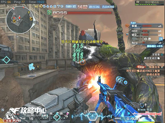 生化巨蜥作为巨蜥峡谷的最终大BOSS,自身实力极其强悍,据说是由毁灭都市的BOSS——上古巨蜥,进一步强化改造而来,强大的激光技能足以使其称霸峡谷。生化巨蜥有一个超强技能是全地图范围的,唯一的死角就是毁灭巨炮的后面。毁灭巨炮不仅可以为我们的玩家提供有力的保护,同时还可以给生化巨蜥以致命的打击,嘴巴是生化巨蜥最大的弱点,毁灭巨炮堵着嘴轰能造成最大伤害,所以修好毁灭巨炮是重中之重。