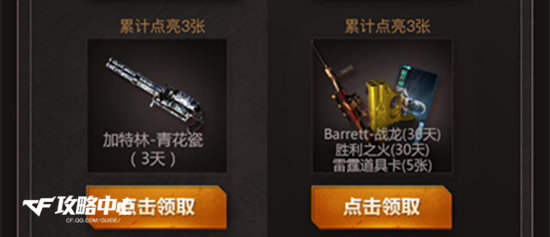除了终极大奖之外,点亮拼图数量达到指定数量即可开起对应的宝箱奖励。首先是累计点亮3张即可领取30天期限的战龙大炮、胜利之火和五张雷霆道具卡。至于战龙大炮和胜利之火,一者是经典之作,一直是后起之秀。即便是在这个英雄级武器泛滥的时代,也有它们的一席之地。
