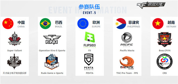 中国军队几乎包揽了近年来CF端游项目所有冠军,那么为什么还有那么多外国队伍前来参赛呢?当然是因为赛事奖励丰厚啊!本次CFGI总奖金高达20万美元,其中仅冠军队伍就可独得10万美金(约合人民币68万元),为此,吸引到了来自全球五大职业赛区的10精锐战队参赛,他们分别是中国赛区:SV、TGF,巴西赛区:Operation Kino、Rude Game、菲律宾赛区:Pacific Macta、TNC Pro Team,越南赛区:BOSS.CFVN 、CHERRY STARS,欧洲赛区:Flipsid3 Tactics、PENTA SPORTS。