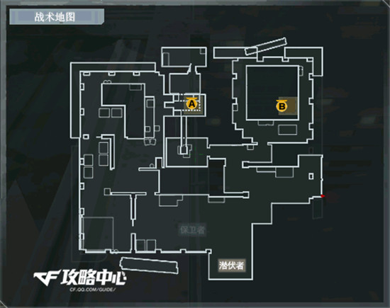 A包点的地形相对狭小,同时保卫者去A的路上掩体较少,并且道路相对曲折,所以一般会有很少量的保卫者会选择A包点进行防守,所以潜伏者快攻A包点是一个不错的选择,而保卫者想要防守A区或者在A路上蹲守,可以选择这个地方。
