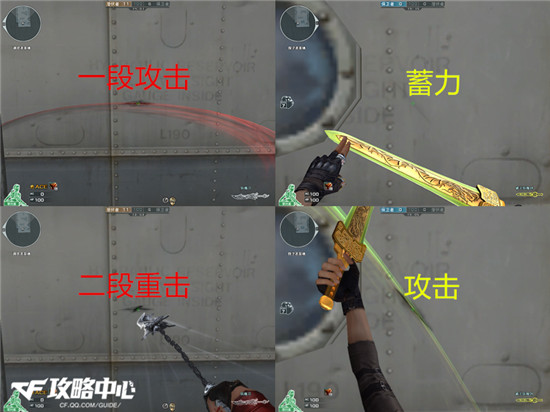 从二者轻击的对比图中可以看出,它们均是采用左右横劈的方式。但斩魔刀在攻击时会有红色光效,看起来十分炫酷,而且其速度也是相对较快。近日有不少小伙伴拿起它在刀战中是左劈右砍,大有当年的马来剑之风采。相对来说,破天斩魔剑的轻击就弱了许多,别的不提,速度慢就是一大弊端。