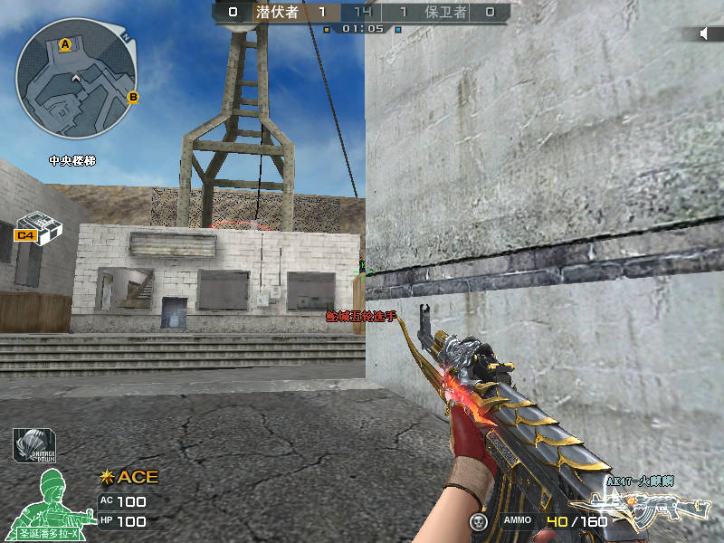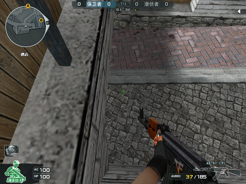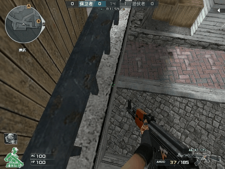 如上图所示,该点位位于酒吧桥大箱子后方,这个点位属于一个非常规点位,相信各位CFer在日常排位中应该很少遇见有保卫者会在这个位置架点。这个点位也在不久前的CFPL季后赛中出现过。