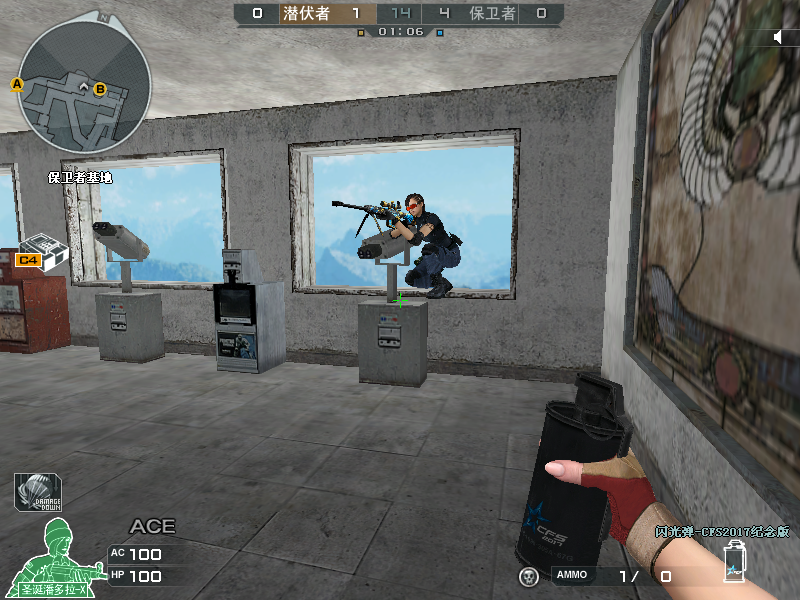 在这个点位使用狙击枪可以对中路横道进行架点。特别是当我们得知潜伏者组织一波从中路横道往A区进攻时,在这个点位防守往往能够实现刷屏。