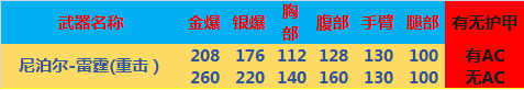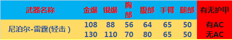在武器修正数据上尼泊尔-雷霆跟其它版本的尼泊尔军刀进行对比的话,也是完全一模一样的。
