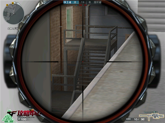 这个点位可以算的上出其不意了,这里可以架B包点的两个进出门。谁能想到在进出B包点的时候在远处的天空中还有一个等待猎杀的狙击手在等待猎物呢?下面给大家看一下上面架点的视角!