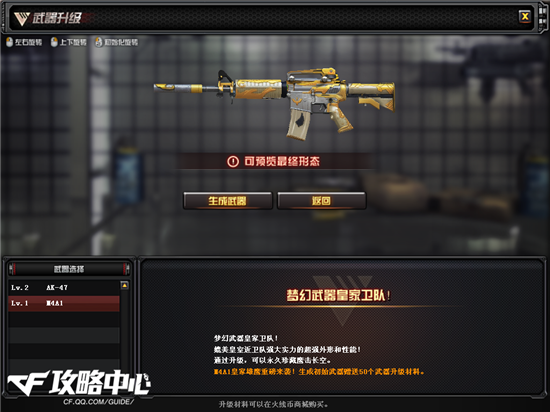 武器升级系统在今年三月份《骑士之光》版本中一经问世,就受到了CFer们的一致好评。免费升级后的皇家骑士不仅有着炫酷的外观,还有着强大的性能。时隔近半年时间,第二把可免费升级的武器也即将在新版本中问世,也正如大家所愿为M4A1。那么今天就一起来看看这把武器又能给我们带来怎样的惊喜吧!