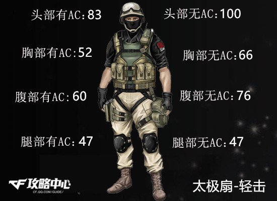 通过测评我们可以发现,太极扇的威力可以算得上是中规中矩。其重击无论打中敌人的任何部位,都是可以一招毙命的。至于它的轻击在敌人无防弹头盔的情况下也是可以直接爆头,其对于敌人上半身的伤害也可以保持在66-76HP之间。但在这个AC遍地的年代,想要直接轻击爆头是有些困难,好在其对于装备有AC的敌人上半身也是能够两下击杀。美中不足的是,其对于敌人的腿部及以下伤害仅为47HP。