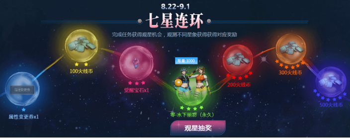 《9.5火麒麟-桃园三结义》的9.1单刀赴会“七星连环”可以免费抽奖!零-水下丽影(永久)都拿出送了……