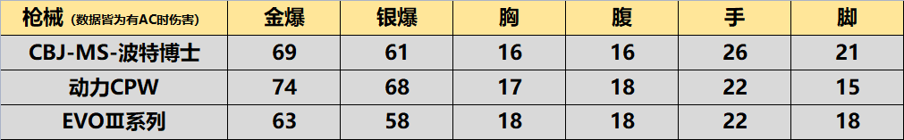 当然了,武器的综合表现除了靠我们的使用感受来评判之外,还要有武器数据的支撑,这里我们对比当下的几款主流冲锋枪,在威力方面CBJ-MS-波特博士的表现仍旧是非常拔群的。