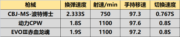 至于武器速度方面,CBJ-MS-波特博士足以跻身于动力CPW、EVO等主流武器的行列,并且在切换速度方面的表现比这两款顶流冲锋枪还要出众,不过射速方面即便是对比原版CBJ-MS有所提升,但是依旧没能达到动力CPW和EVO的水平。