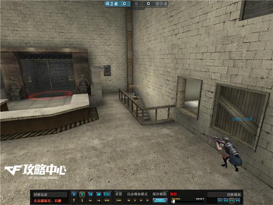 静步上去之后就可以从上往下仔细地看一下B包点还有没有保卫者了,然后也同时提防一下下图这个位子。
