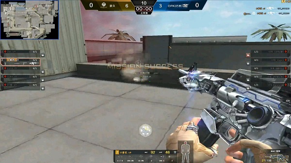 还是异域小城这张地图,只不过对阵双方换了,上半场游久6-3领先巴西OPK,上半场结束前的两场,OPK奋力追赶,想要起势,易边再战,如果再让OPK连续追分,游久这边的优势就会越来越小,下半场第一局,游久组织进攻B区,结果与OPK相遇,双方火拼,游久被清掉三人且C4被击落,只剩下小雅哲和冷冷两人,关键时刻小雅哲稳住击杀酒吧桥上的OPK两名队员安全的将C4带回,重新组织后,继续进攻B区,小雅哲在保卫者基地再次击杀一名OPK成员,已经完成了单局三杀,此时C4已经安装,小雅哲在保卫者基地的二楼与冷冷成上下位置的卡点,OPK的两名防守队员从B道回防,出来就是秒掉了冷冷,这时只剩下小雅哲一人,闪身打掉SUPREMO,随后朝包点方向扔一颗高爆,紧接着就闪出去打掉BRKSS3,完成了单局五杀,力挽狂澜!