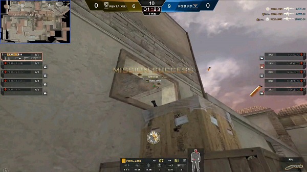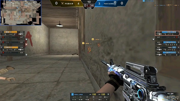比赛到了下半场,PENTA成为了潜伏者,比分已经到了6-9,如果第十八局再输,那么比赛就以PG胜利而告终,而且第十八局的残局PENTA只剩下AWSM一个人,另一边PG还有小嗨嗨、小调调和JIAWEN,所幸的是C4在AWSM的身上,三名保卫者都在A点附近,AWSM神不知鬼不觉的到达B区,这个时候,一般都是在时间充足的情况下,先不安装C4,先试试能否抽掉对方一个或俩个人,如果安装C4位置就直接暴露,三个保卫者过来抓你一个,会很被动,但是AWSM艺高人胆大,直接安装C4跳入B口,并且想出去抓人,这边PG三人迅速回防,在第一时间交火后,AWSM迅速从B口回到B点,小调调见状,直接进B门,不料被AWSM穿死,小嗨嗨补枪也被AWSM带走,从B口出来的JIAWEN也被AWSM带走,完成了三连杀!