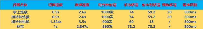 小结:在各项枪械速度方面,“掌上炼狱”也与英雄级炼狱保持了相同的水准。对于这样的数据表现,相信玩家们都是能接受且理解的。毕竟炼狱机枪在游戏中已经这么强了,如果再进行数据方面的强化那可能就会影响到游戏平衡问题了。