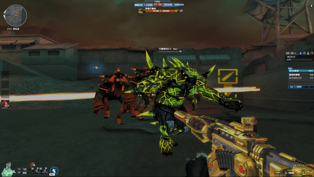 注意:在无尽挑战中,shift仅具有位移效果,没有无敌效果。武器选择方面,主战武器首推激光,其次巨龙、泰坦(注意不要在五号广场最后打BOSS的时候用巨龙),甚至乱世、神罚(会玩的话)也能用,不建议用94(低阶段除外)。