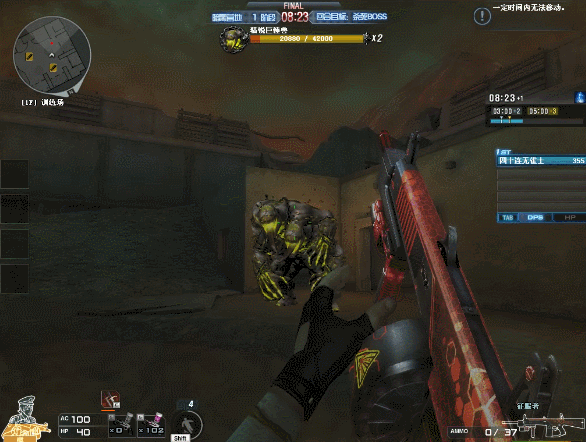 第六关:场地中刷出两只巨锤兽,同样各项数值完全相同,仇恨、血量相互独立。