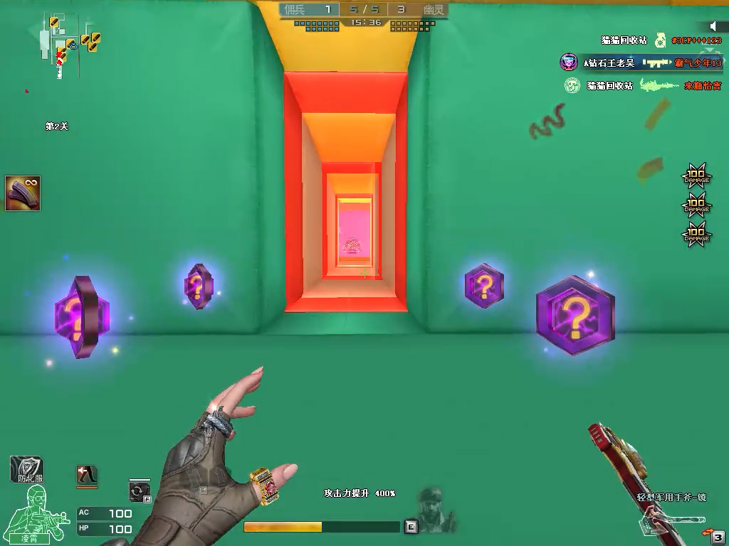 第三关一道门开启时间需要等很久,不必着急退守门口。后退蹲走躲避障碍物,一把炼狱搭配BUFF道具使用,生动诠释一夫当关万夫莫开。