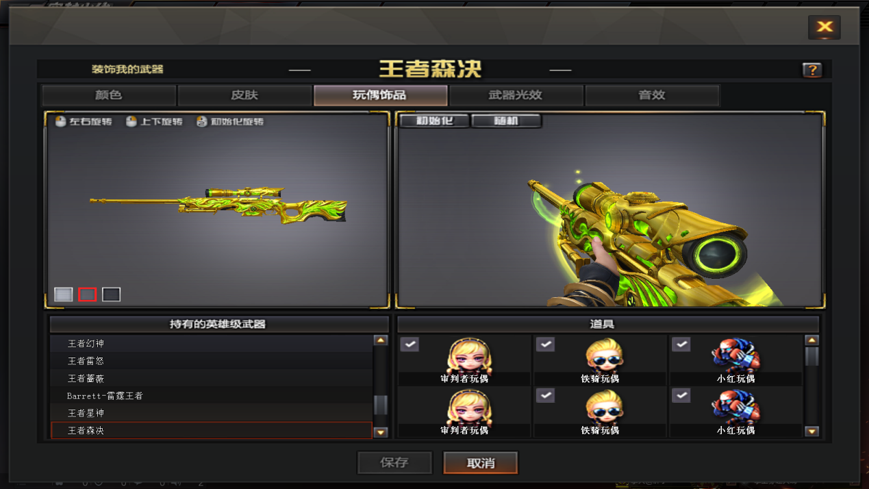 作为新兴王者武器,王者森决虽然没有光效和音效卡这类专属装饰品,但是可以自由装备玩偶,而且对于这种金黄色的外观,搭配玩偶还是比较容易的,具体的搭配效果就要看小伙伴们各自的喜好啦~