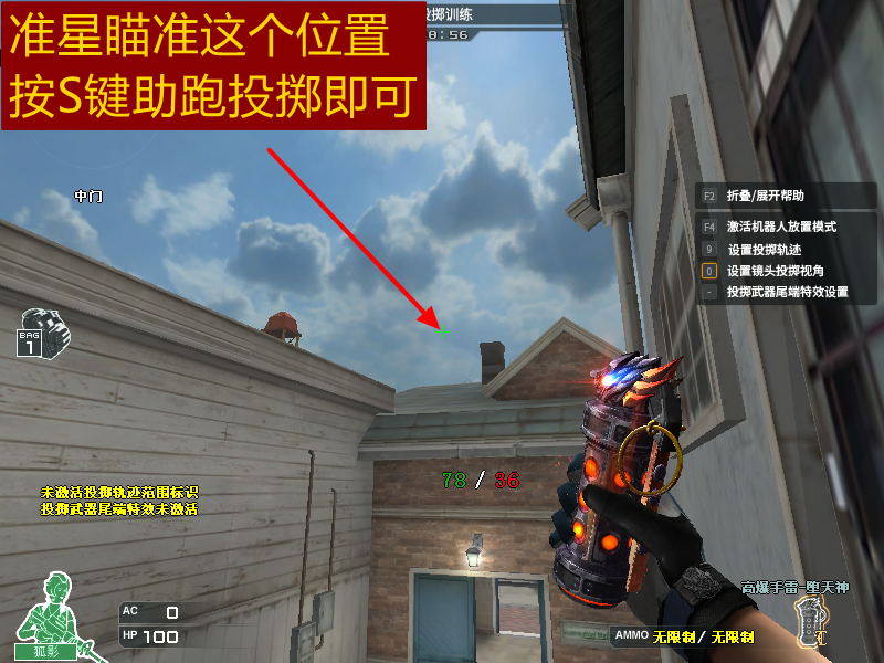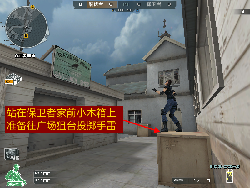 投掷这颗手雷时,建议在中路蓝门位置投掷一颗烟雾弹来掩护自己,避免当我们投掷手雷弹的时候被广场的潜伏者发现。