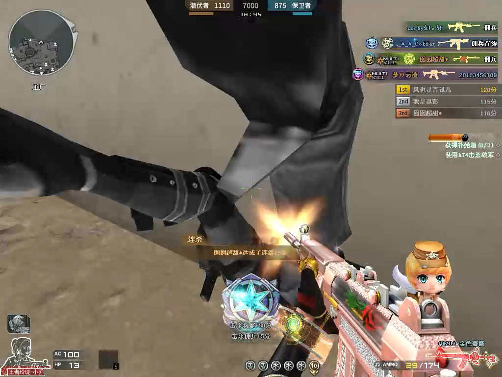 佣兵刷新有个特点:当玩家复活时周围都将刷新一定数量的佣兵。CFer可以通过蹲守复活点玩家,从而击杀更多的佣兵获取更多分数,也能够将连续击杀数量快速叠加。