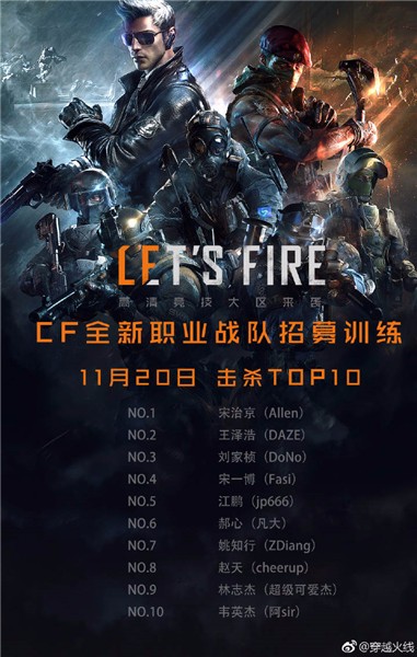 - (2018-11-26) 阵容公布!参训CF高清竞技大区各战队正式成团!