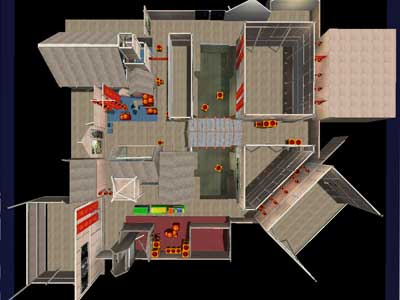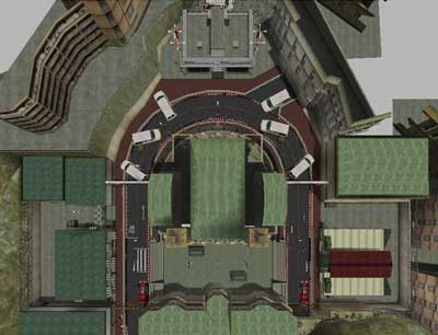 地图结构比较复杂,因为是赛场嘛,车子很多,地图中间有一座非常古老的房子,应该是FIA主办方的办公的地方吧。