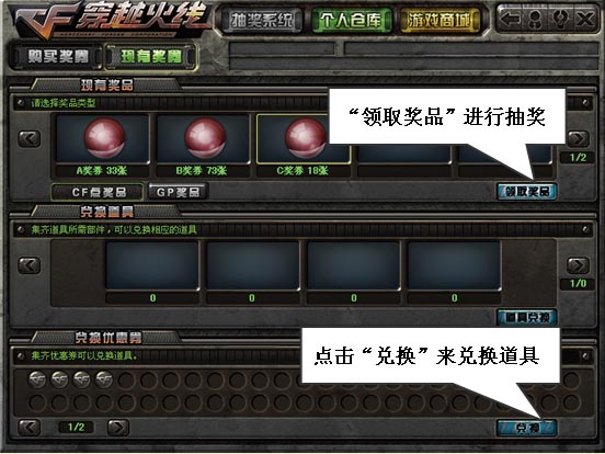 当您的兑换券累计到一定数量之后,便可以点击“兑换”按钮来兑换道具。