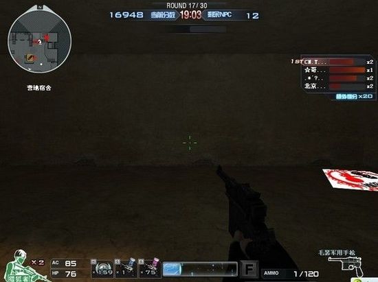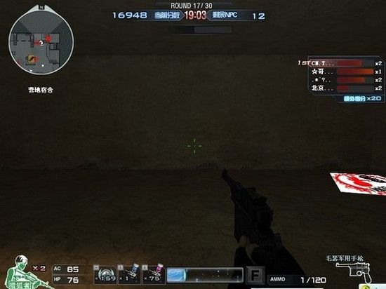 先说两个配合的,不刷水晶的,配合的一个卡窗子,图在楼上。另外一个人就在窗子下面的屋子里,也就是要站在我开枪打的这地方。如果有怪向你过来,别打,原地待着,怪跑到你身边就跑别处去,不用担心被打