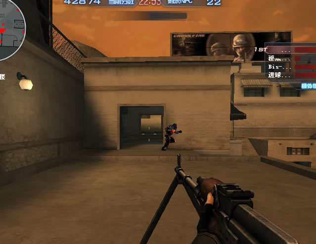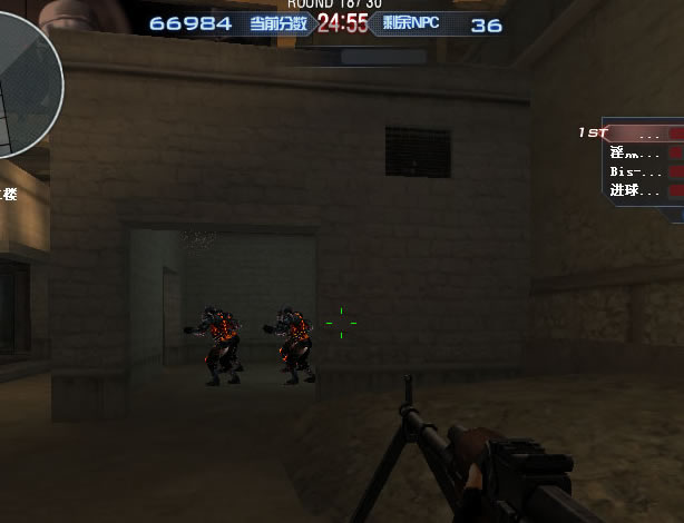 站这里就行了,枪口对准门口,尽量爆头打怪。