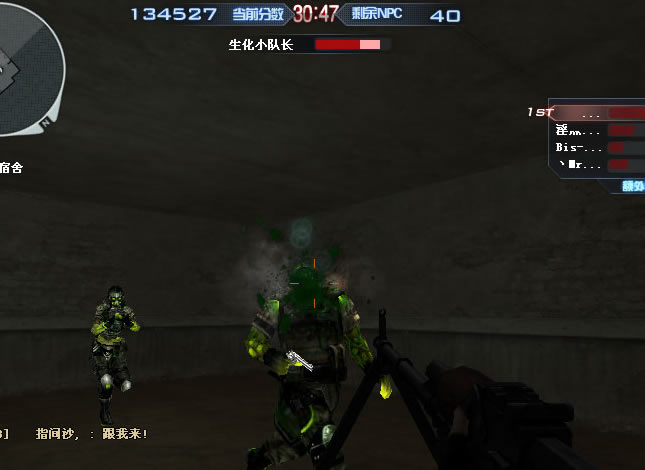 打到只剩4、5个NPC的时候,去屋子上边的小屋,等着刷出来的绿巨人,任意一名或者两名队友(两个人打快些,一个人也行)等其刚刷出来的时候搞死他。