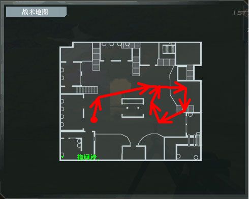 屋内三人站墙角等怪进屋子然后再打;与此同时,第四名队友去屋子上方的房间,这里会刷新3只自爆的,这第四名队友只需把每只自爆的打一枪,然后顺着地图跑直线边退边打即可。跑动路线如图,我已经用箭头标记了。不熟悉地图的朋友先进游戏熟悉一下地图再看图比较好。