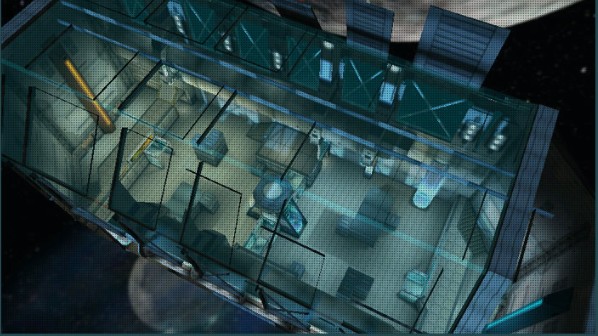 这张地图似乎整体坐落在外太空空间轨道的一颗卫星上,顶部呈现透明状态,可以轻易俯览内部一切。内部则有着一些高度不一、大小不一的箱子