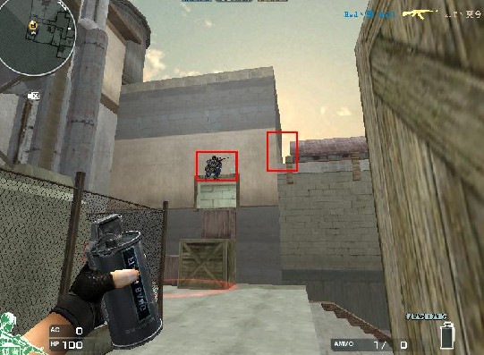 8、必须在A拐角有自己的战友的时候阴在这,A小道看不到你,敌人走到木板的时候会看斜坡,忽略你的位置,注意,出击的时机。