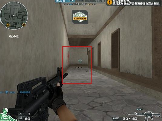 预瞄这个位置,因为他比你先出现在那里,玩狙击的人知道,谁先出来等,后闪出来的人打死你的几率大,必须预瞄,你甩过去的时候已经中弹了。如果敌人的狙击在瞄警家,有80%的几率在红框的位置,打一枪就闪,不可恋战。