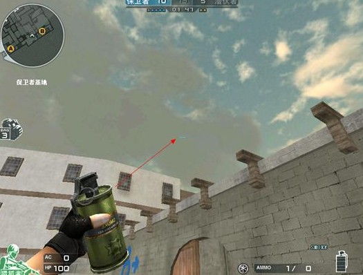 1.3如果你出生点距离B点最近,可以先往天上,箭头位置扔个烟雾,最快的速度冲往B水。