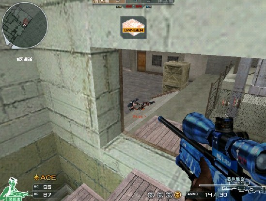B狗建议就躲在我这个图片左边箱子上面,不要露头,听见拆包,直接跳我这位置,杀之,(这个点大家注意了,注意中路偷袭。一定要听到拆包再出去)