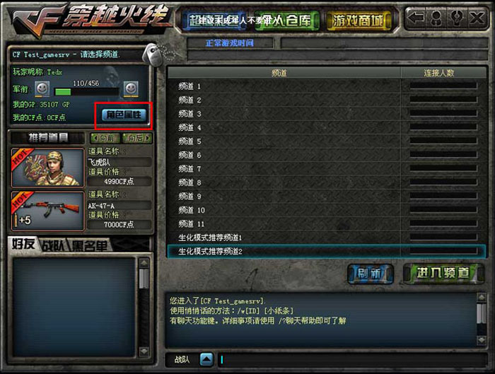 新版本在频道列表、房间列表、游戏大厅三个界面内追加了“角色属性”按钮,方便玩家查看属性。