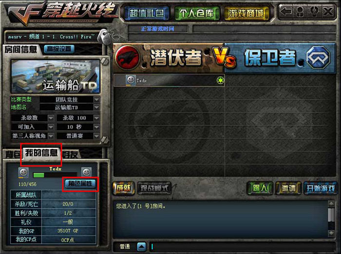 ●房间列表内的“角色属性”按钮: