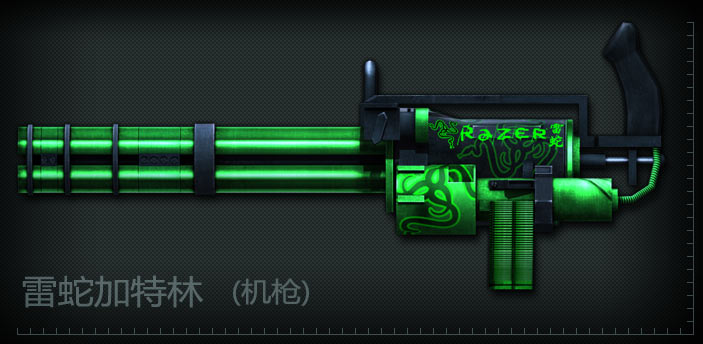 Razer特制版加特林,威力十足,疯狂扫射时有一夫当关万夫莫开之势。