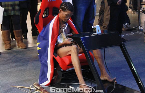 在WCG2011世界总决赛的赛场,一位来自纳米比亚的非洲选手吸引了超多眼球,不是因为他的实力,而是因为他那近乎赤裸的穿着。