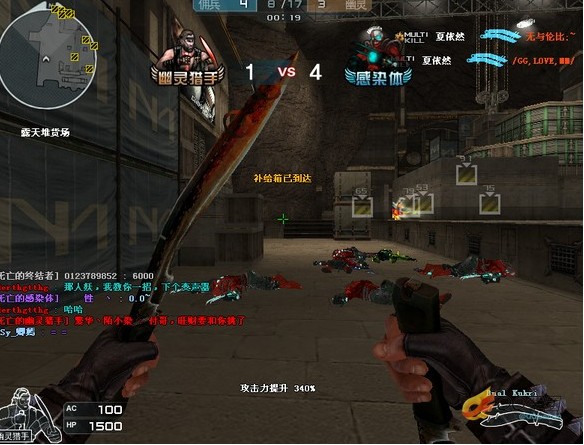 对于这张老图,依然给大家的建议是,选择奔放派,不要一味的站在高台抑或是图中左侧的长廊上。或许当你的火力足够猛时,你能够生存下来。但是一定会有很多人抱着这种想法,所以,如果你想当上幽灵猎手,这种方法还是不太可取的。它只能带给你稳定的分数,是一种比较基本但是无趣的方法。下面我给大家介绍一下如何才能在这个模式中生存下去然后干掉更多的小龙虾。首先,比赛的开始时刻,选择右路的高台,在出现生化幽灵的时候观察好局势,以确定下一步跑酷的路线。可以选择大炮的使用,但是一定要配一把不错的手枪,而且需要有手枪弹弹夹,在近战的交火中带给你更多的生存机会。大炮的使用一定要灵活,而且瞬镜一定要过关,以备不时之需,在僵尸突然出现在自己眼前时开一枪以救自己一命。推荐使用比较轻一点的步枪,推荐迷彩m4a1-s,因为在交火中,快速的上弹速度会带给你更多的生存机会。切记,跑酷的路线一定要根据据是的变化而变化,不要单一的走一条路线,而且一定要经过反复的练习。之所以这么说是因为当很多npc围攻你一个的时候肯定会紧张,即使再紧张如果足够熟悉跑酷路线,你也一定能够从容的应对。当提示你按E的时候,也不要着急,根据情况和局势分析一下,如果3个人在一起,那么你可以选择步枪的辅助,一个人变成猎手然后你辅佐他们,在实在坚持不住的情况下别墨迹直接按E。对于猎手的攻击,不要盲目的进僵尸群,可以考虑先跑酷,然后逐一解决掉追着你的小龙虾。对于蓝色的终结者,一定要加以小心。因为右键的攻击还是非常犀利的,5千的hp攻击力会将你一下电死。所以,要利用碎步迷惑对方,以达到对方攻击不到你而你又能够杀死对方。猎手的攻击左键和右键分别是1千和3千,对于这两种攻击方式,没有什么太多的要求,如果你能够很好的把握尼泊尔军刀的攻击范围和出刀节奏右键或许是个很好的选择,但是当你面对着大波僵尸的进攻,左键快而犀利的进攻节奏或许能够带你走出僵尸的包围。最后从容的应对你所面对的情况,如果很不乐观在血量很少的情况下,你可以选择跑酷来维持自己的生命,不要硬拼,活下去才是硬道理。希望依然的这些建议能够在生化模式中帮助到大家。
