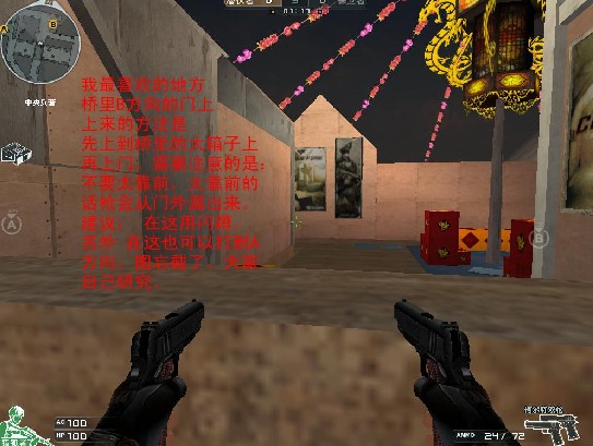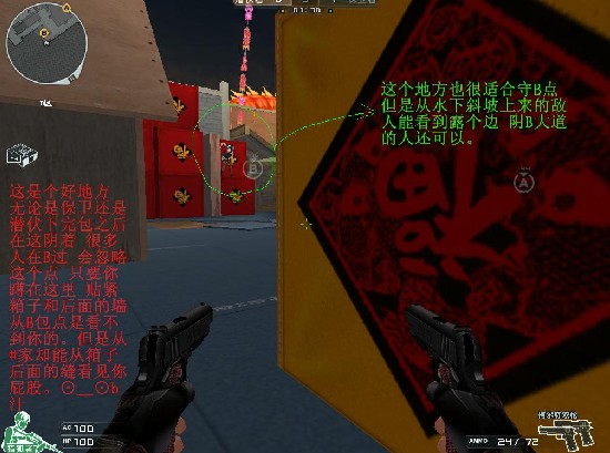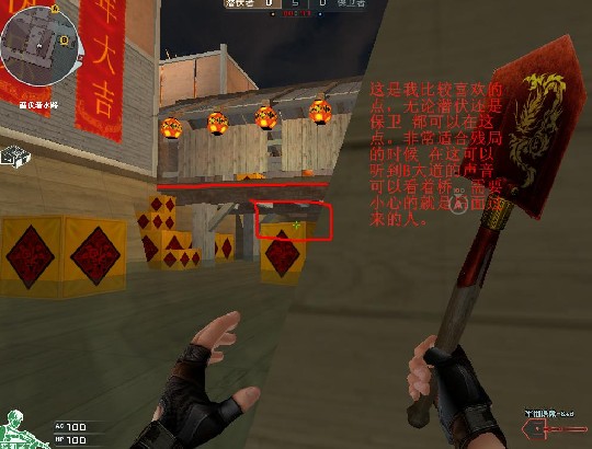 总结下:新年这地图的关键是在于水路的控制。我认为拿下了水路的控制权就等于拿下了比赛。对于潜伏,要注意火力不能分散,因为无论A还是B保卫防守都占优势。对于保卫:应该熟悉地图的每一个阴点。从哪里能打到哪里争取你杀了敌人敌人还没找到你这才是王道。要将阴人进行到底