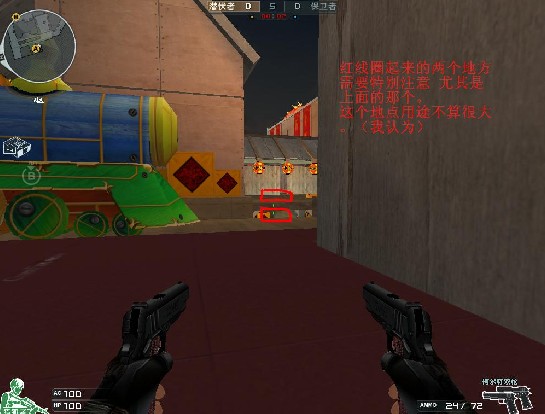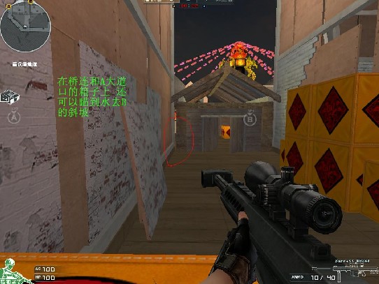 A包点的图忘记截了我就简单说说吧。A包点左侧黄箱子上可以阴人(配合喷图烟雾等)适合潜伏下包后。A点对面火车后的凹陷处可以透过火车车厢之间的缝隙透到A包点。(⊙﹏⊙b汗)