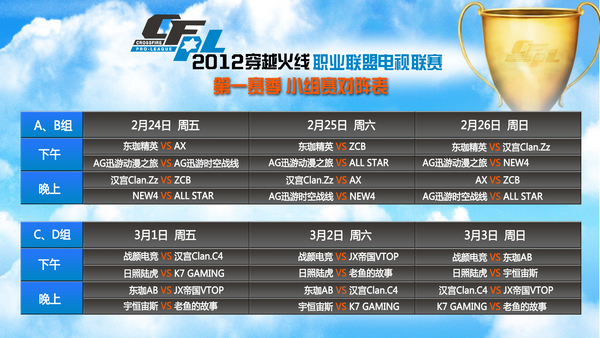 2012CFPL穿越火线职业联盟电视联赛小组赛地图公示: